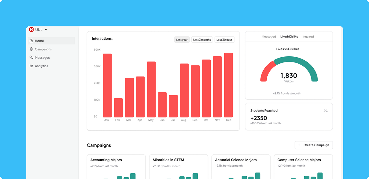 We think there’s a better way for colleges to connect with students who are genuinely interested, not just names on a purchased list, but students who’ve explored the school and see it as a fit.